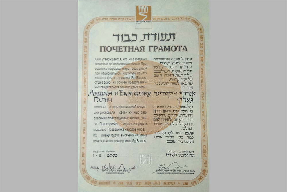 У 1980-х рр. Борис і Олена Добровенські переїхали до Ізраїлю. Саме завдяки їм 21 січня 2000 р. Яд Вашем удостоїв Андрія й Катерину Галичів почесним званням «Праведник народів світу».