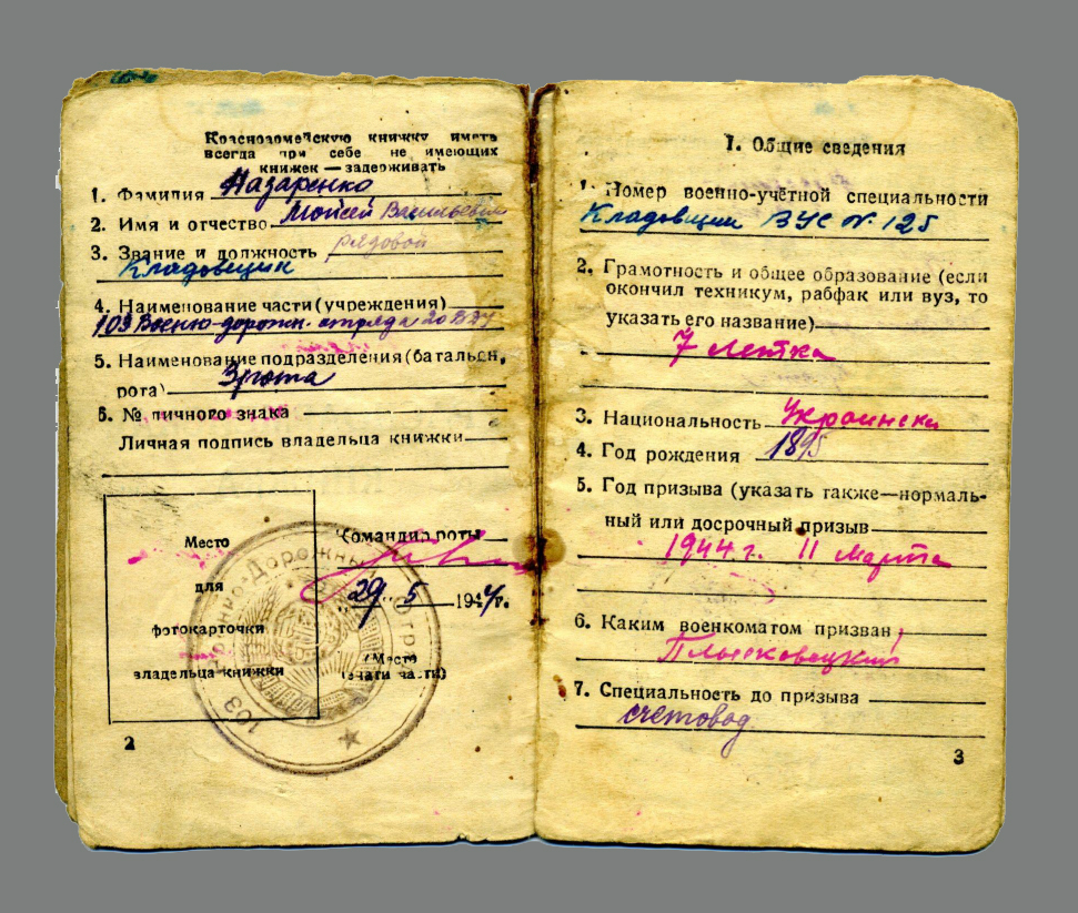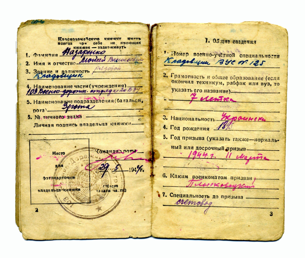 Із поверненням Червоної армії Мойсей Назаренко був мобілізований на фронт. У 1944–1945 рр. – рядовий, комірник 3-ї роти 103-го військово-дорожнього загону. Його старша донька Єфросинія Назаренко (Суденко) по війні закінчила Вінницький державний педагогічний інститут. Понад 30 років працювала вчителем історії у Вінниці.