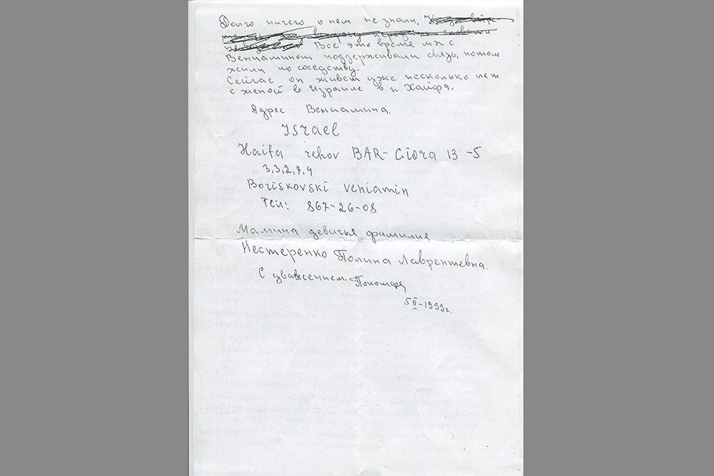 Після війни Веніамін Борисковський повернувся в Маріуполь і залишився в теплих стосунках із родиною Олейниченків. Підтримував із ними зв’язок і після того, як у 1990-х рр. емігрував до Ізраїлю.
