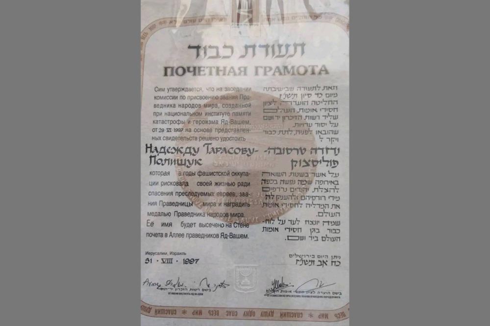 У 1997 р. Яд Вашем визнав Гната Поліщука й Надію Тарасову (Поліщук) Праведниками народів світу.