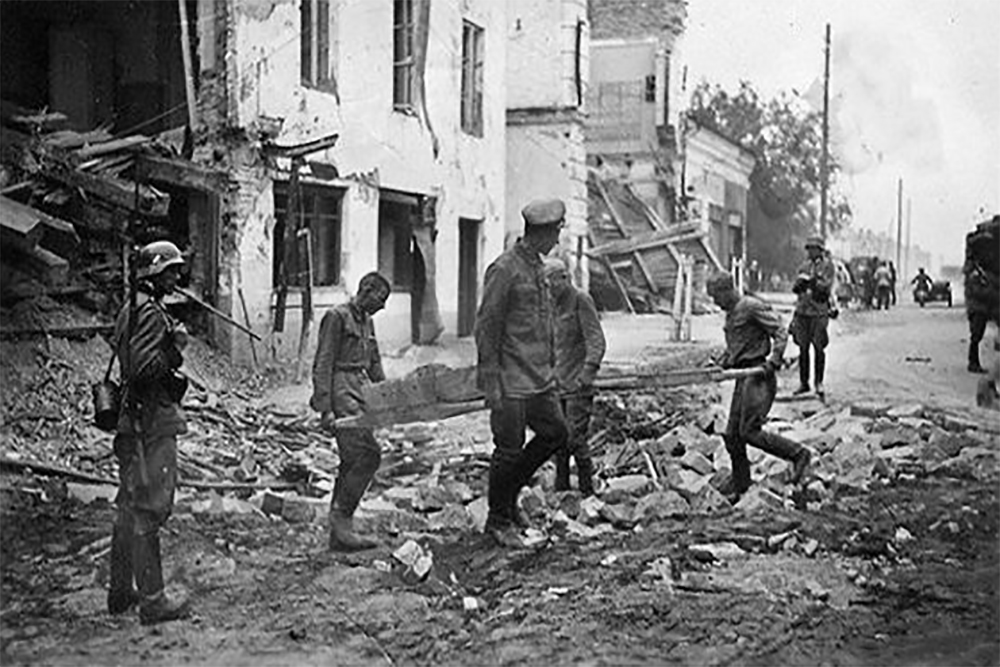 Місто було зайняте частинами Вермахту вже надвечір 25 червня 1941 р., і перші антиєврейські акції почалися майже одразу після окупації. Невдовзі містом прокотився погром, організований німецькою адміністрацією. Приводом для нього послужило звинувачення євреїв у масових розстрілах в’язнів міської тюрми, здійснених силами НКВД незадовго до того, як у місто увійшли німецькі війська. На початку липня зондеркомандою 4а були організовані розстрільні акції, внаслідок яких у замку Любарта було вбито близько 1,5 тис. євреїв.